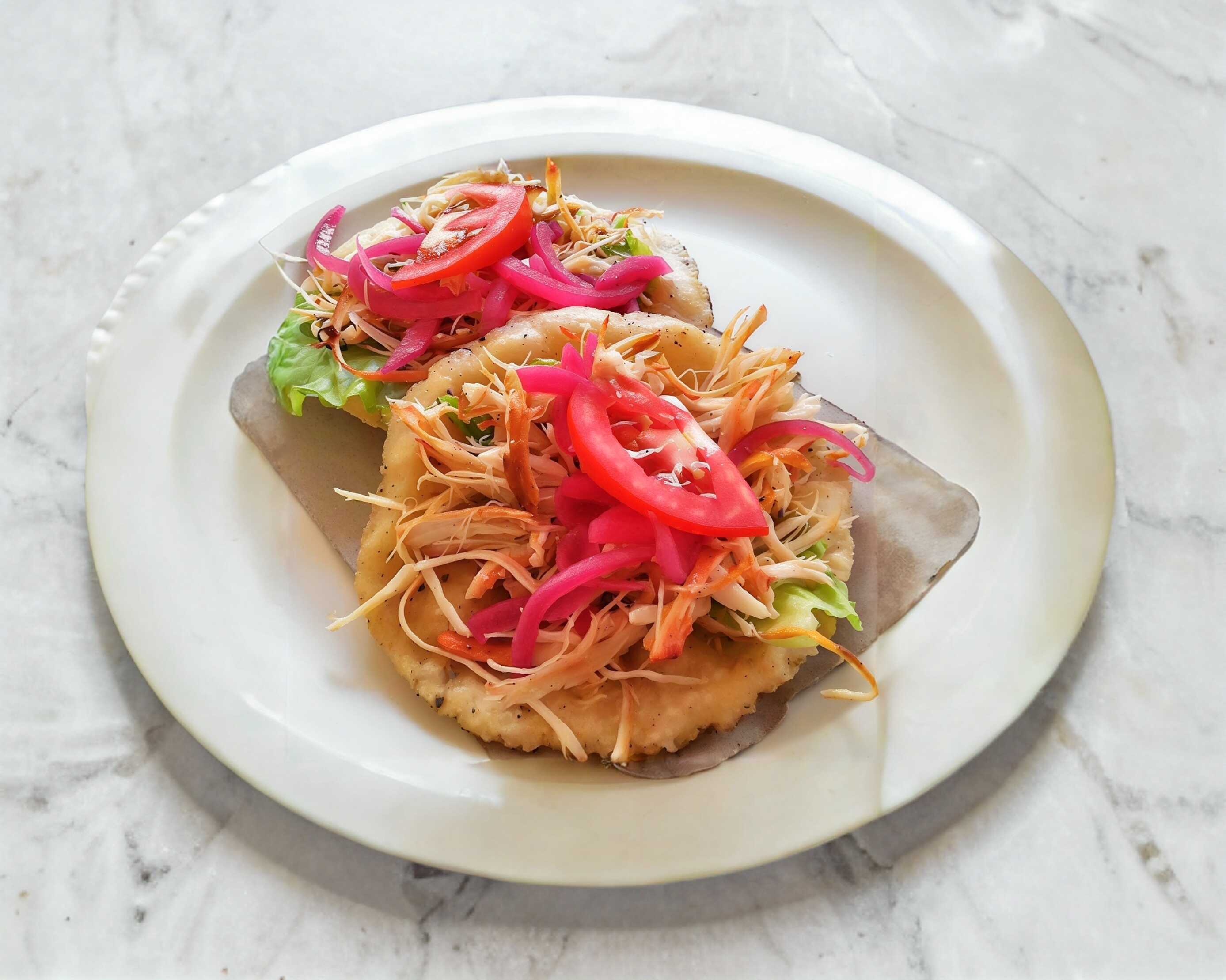 Salbutes con pollo y huevo.