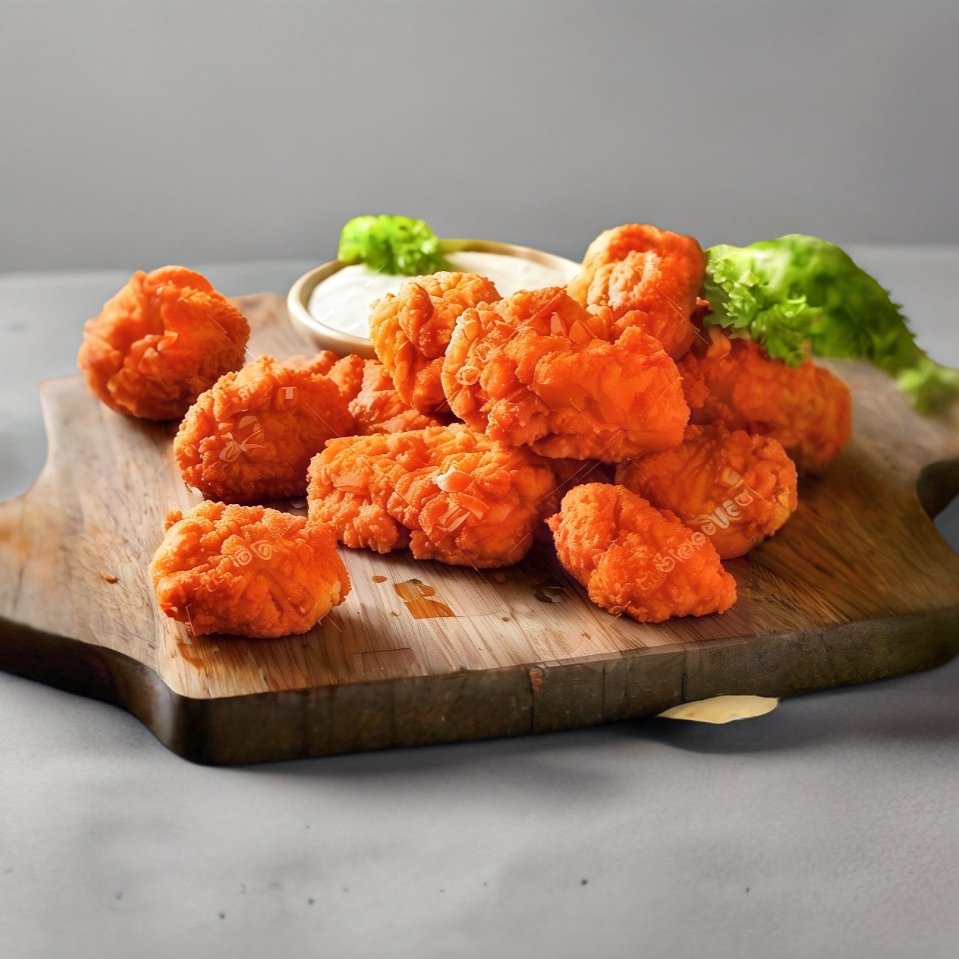 8 (ocho) piezas Boneless BBQ o Buffalos con porcion de aderezo ranch.