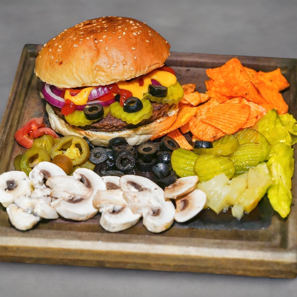 Hamburguesa con carne de res select prime (200 g peso en crudo) y los ingredientes de tu elección.