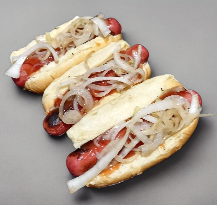 Pan, salchicha premium, jamón y queso Americano, cebolla, Manchego, queso bola