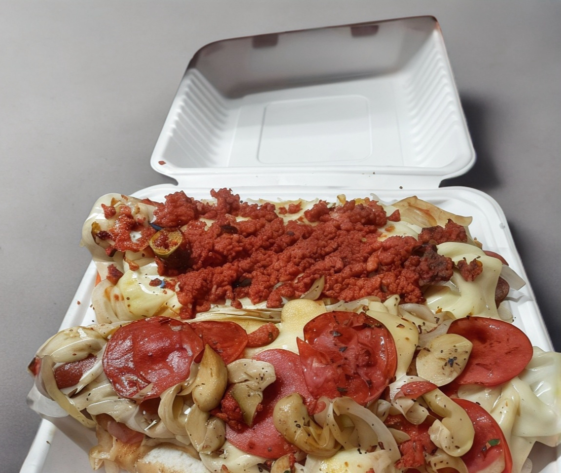 Pan artesanal, mayonesa, carne 100% proteína, jamón y queso tipo americano, cebolla, lechuga romana, cátsup, queso manchego, pepperoni, champiñón y tocino.