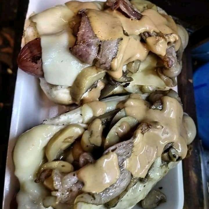 Pan, carne, jamón, queso Americano, romanita, cebolla, catsup, mayonesa, Manchego y chorizo Ranchero