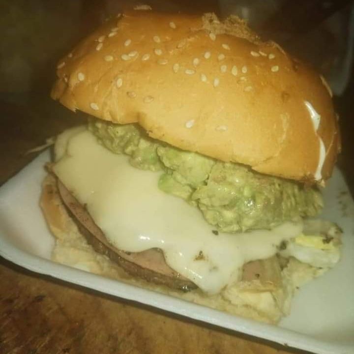 Pan artesanal, mayonesa, carne 100% proteína, jamón y queso tipo americano, cebolla, lechuga romana, cátsup.