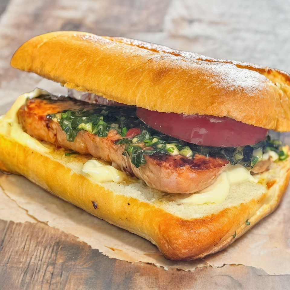 Pan Baguette, Chorizo argentino x2, chimichurri x2, tomate y mayonesa.