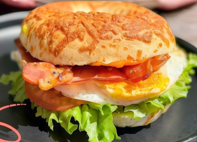 Delicioso sandwich con aderezo de chipotle, jamon, queso, huevo, tocino y vegetales acompañado de orden de papas a la francesa.