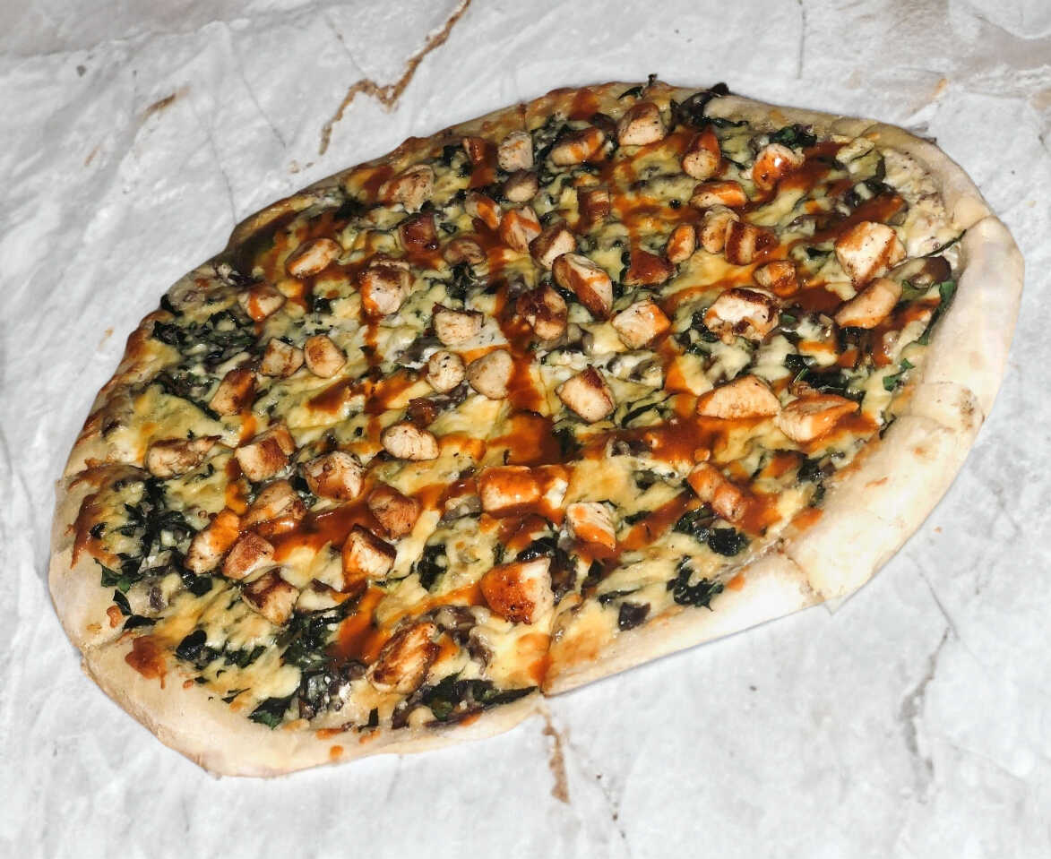 Pechuga a la plancha o boneless , búfalo, espinaca y champiñon