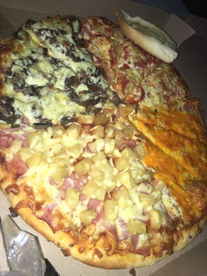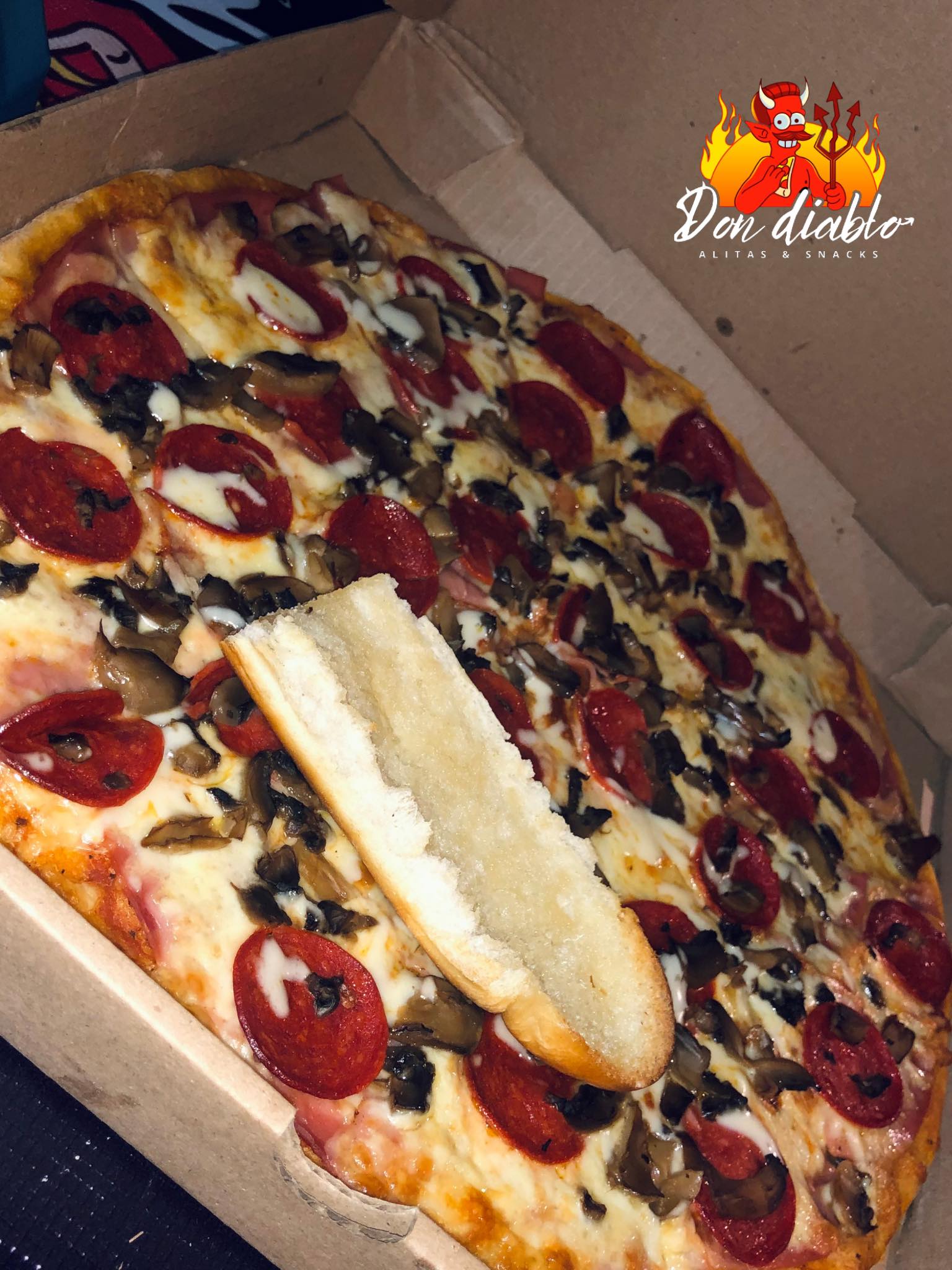 Base jamón y queso 1/4 de champiñon; 1/4 de piña; 1/4 de ; 1/4 de Deysi