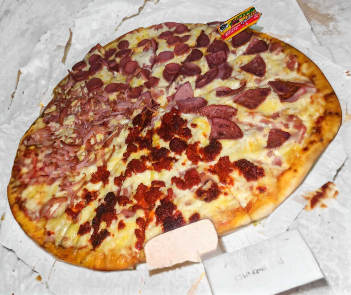 Base jamón y queso; 1/4 de salchicha de pavo; 1/4 de chorizo; 1/4 tocino; 1/4 salami