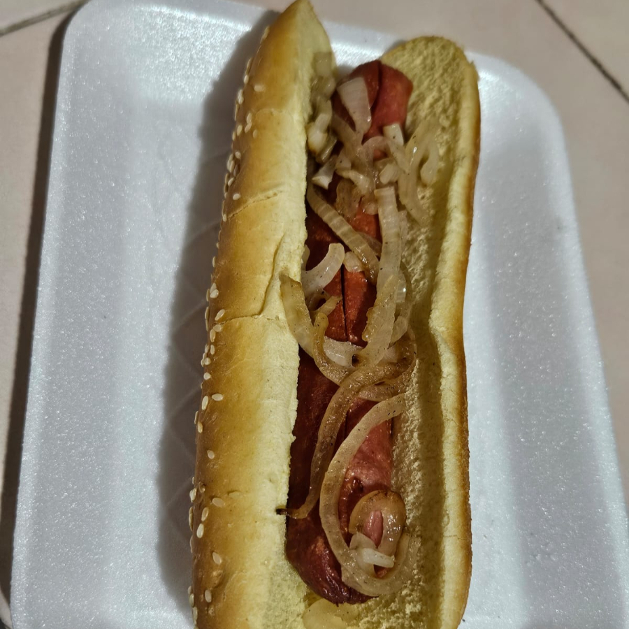 Dogo sencillo con salchicha de pavo jumbo ( 18 cm ) , pan de dogo con ajonjolí ( 18 cm )incluye cebolla cocida , aros de cebolla, aderezos , mostaza, mayonesa, jalapeño y catsup .