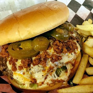 Hamburguesa chorizo rojo con doble carne de arrachera ,150 g con pan BRIOCHE ,incluye porción de francesa lechuga,tomate, cebolla, jamón y queso manchego , mostaza, mayonesa, catsup y jalapeño , está promoción sólo incluye una porción de francesa..