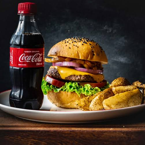4 Hamburguesas sencillas de doble carne, incluye 150 gm, cada rodada de carne, pan brioche, 4 refrescos de Cola, 4 porciones de papa a la francesa, jamón y queso aparte los aderezos.