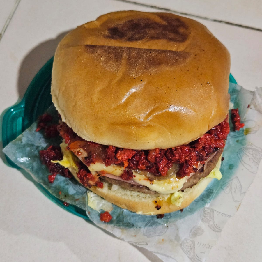 Hamburguesa chorizo rojo triple carne y queso