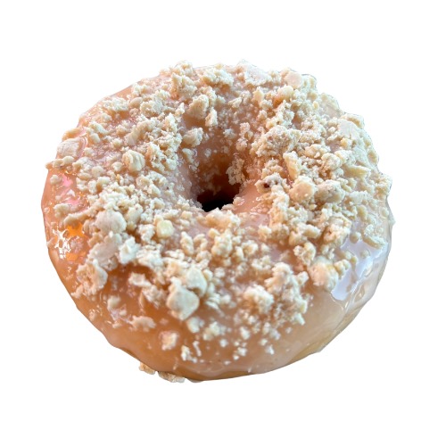 Deliciosa dona de mazapán. Tiene pequeños trozos de mazapán encima.