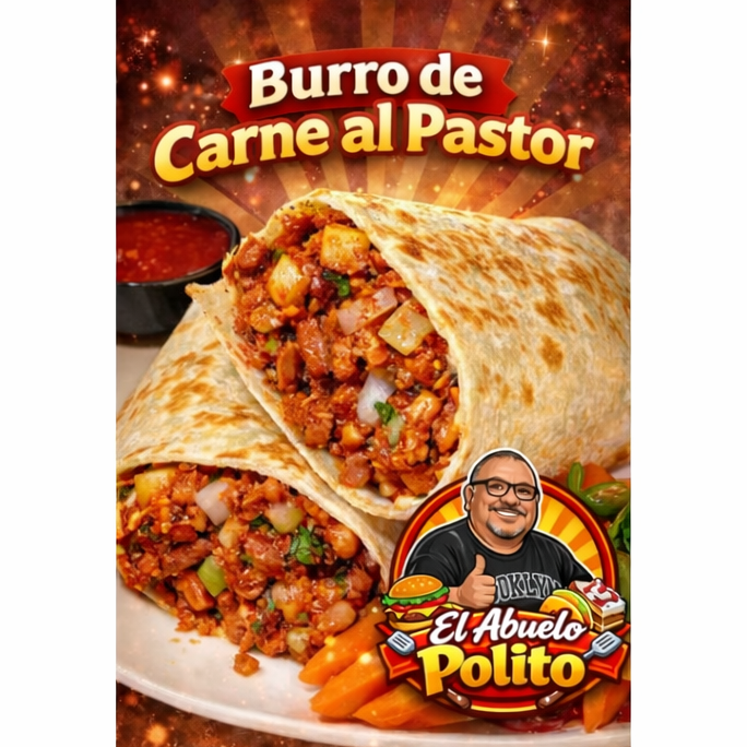 🌯Delicioso burrito relleno de jugosa carne al pastor recién preparada, acompañado de ingredientes frescos y envuelto en una tortilla grande y suave. Llenador, sabroso y perfecto para quitar el antojo.
