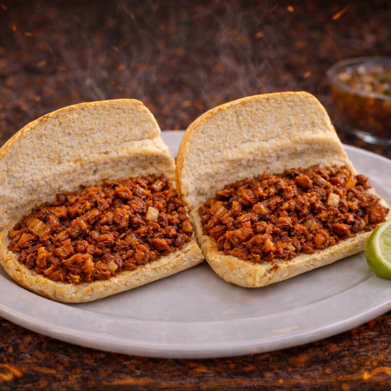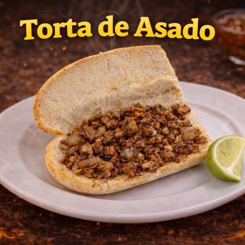 🥖Deliciosa torta de asado acompañado de limón, cebolla y salsas de la casa.
