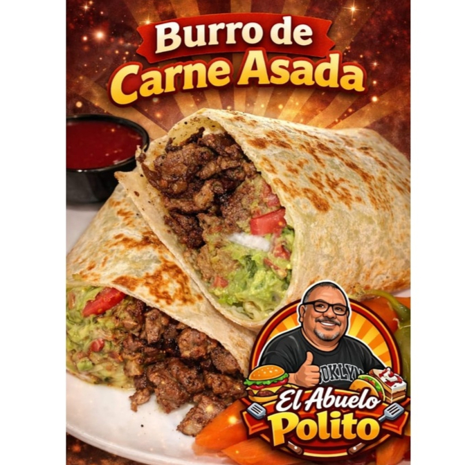 🌯Delicioso burrito relleno de jugosa carne asada recién preparada, acompañado de ingredientes frescos y envuelto en una tortilla grande y suave. Llenador, sabroso y perfecto para quitar el antojo.