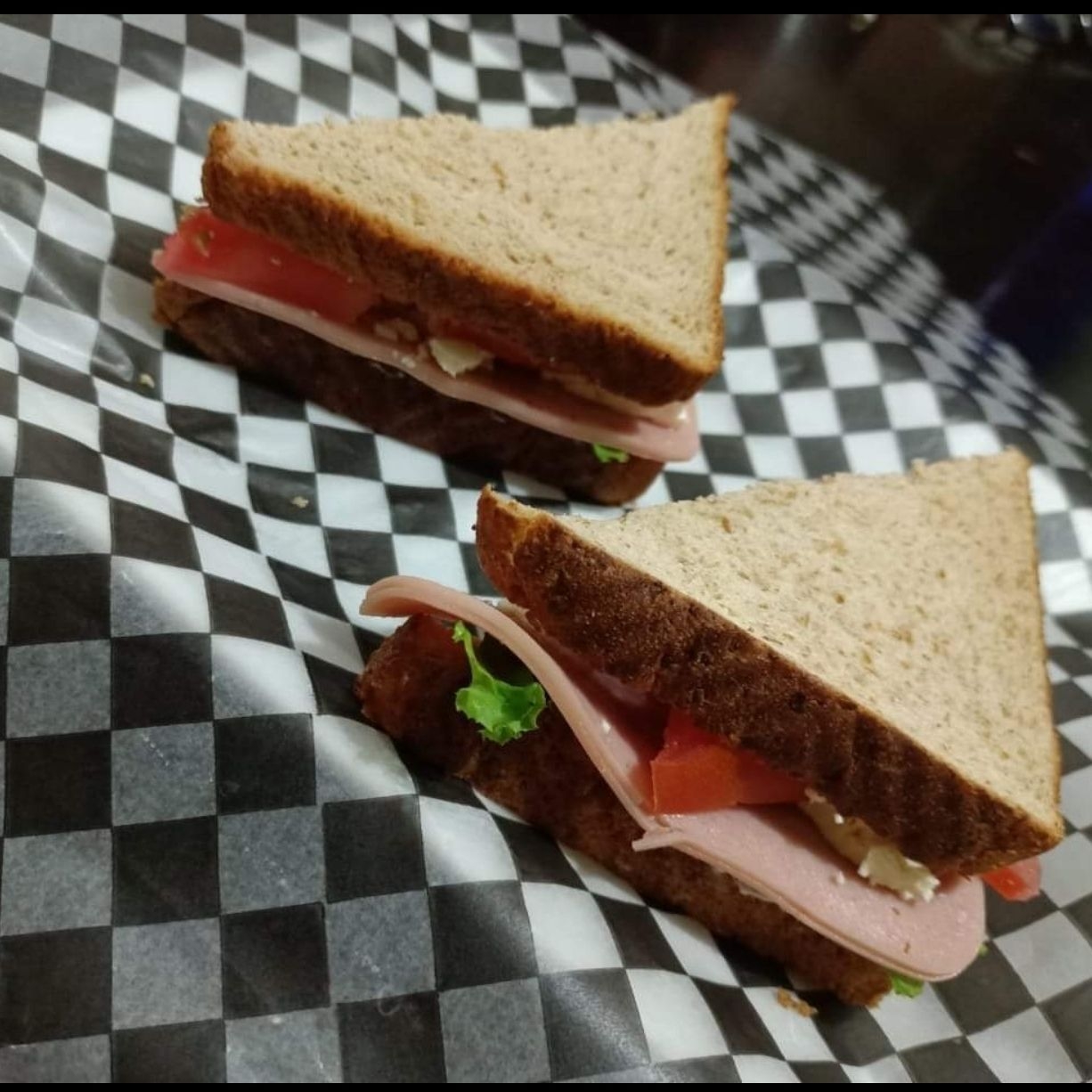 2 rebanadas de pan integral o blanco sujeto a disponibilidad, ligeramente con mayonesa, lechuga, tomate y pepino en rodajas, con jamón de pavo y queso panela FUD.