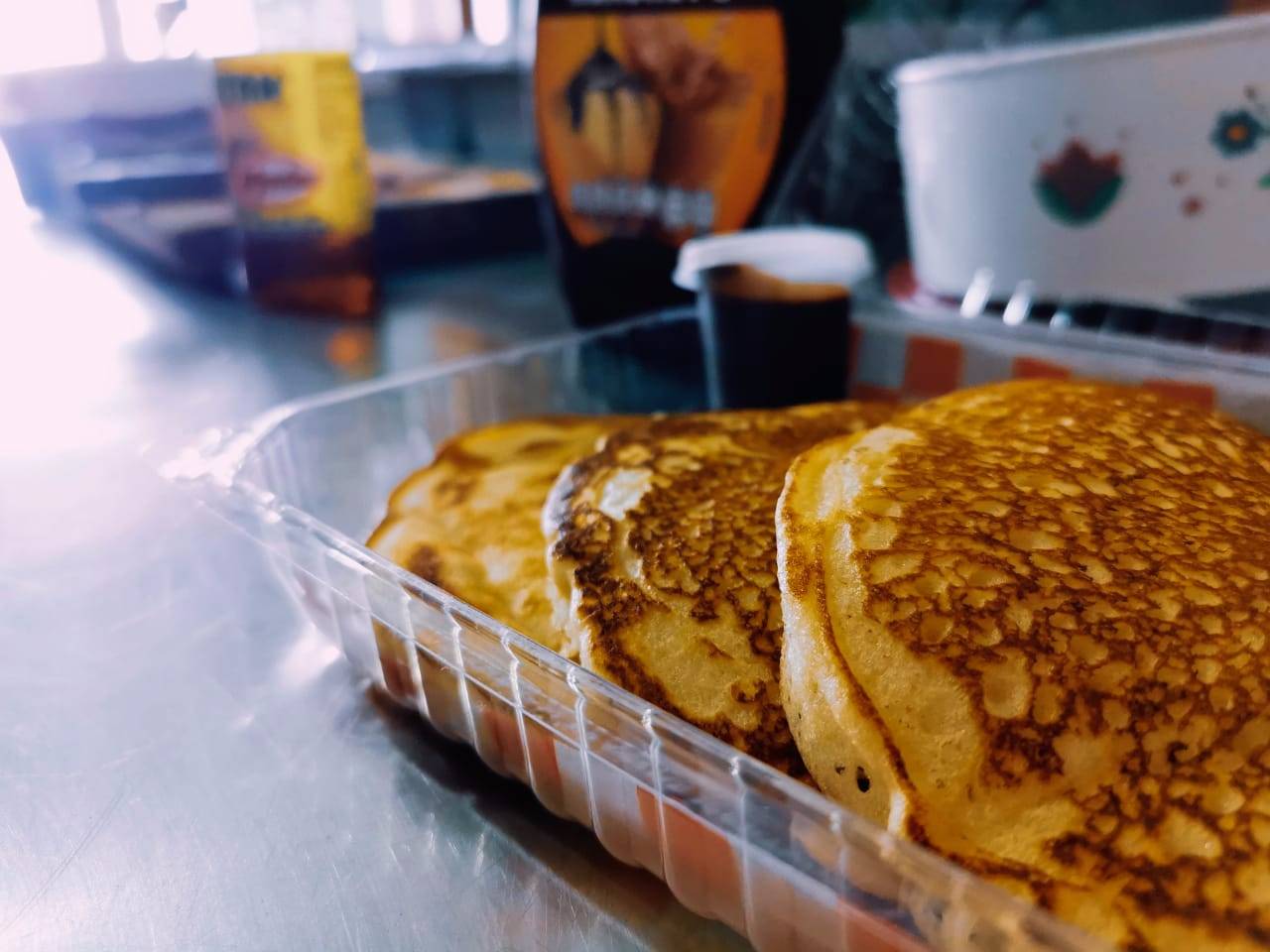 Orden de tres hot Cakes, más topping a elegir. (Miel, Nutella, mermelada de fresa, miel Maple) indicar cuál por comentario.