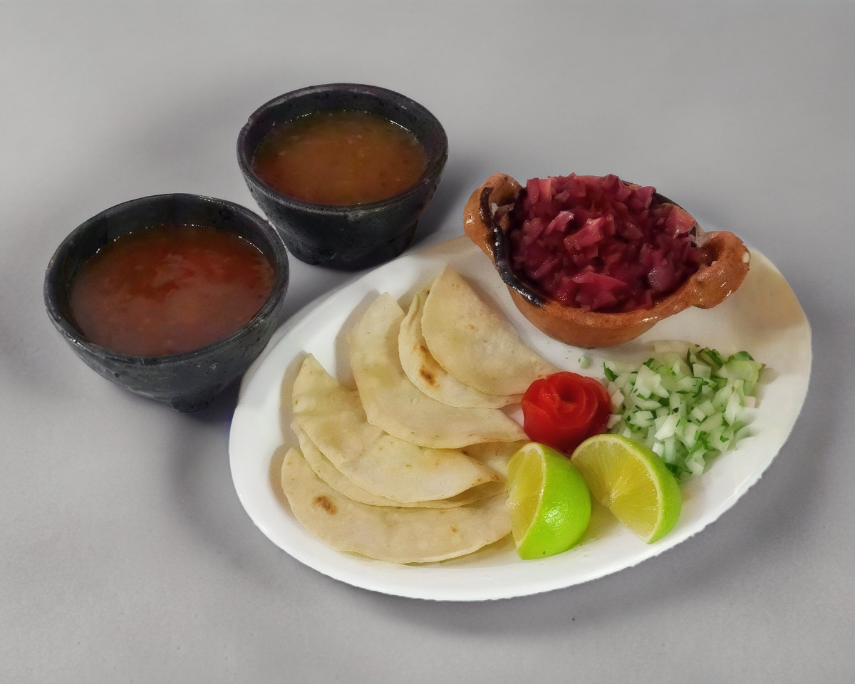 1 Tortilla de harina gringa, queso, carne de pastor, cebolla, cilantro y limón
