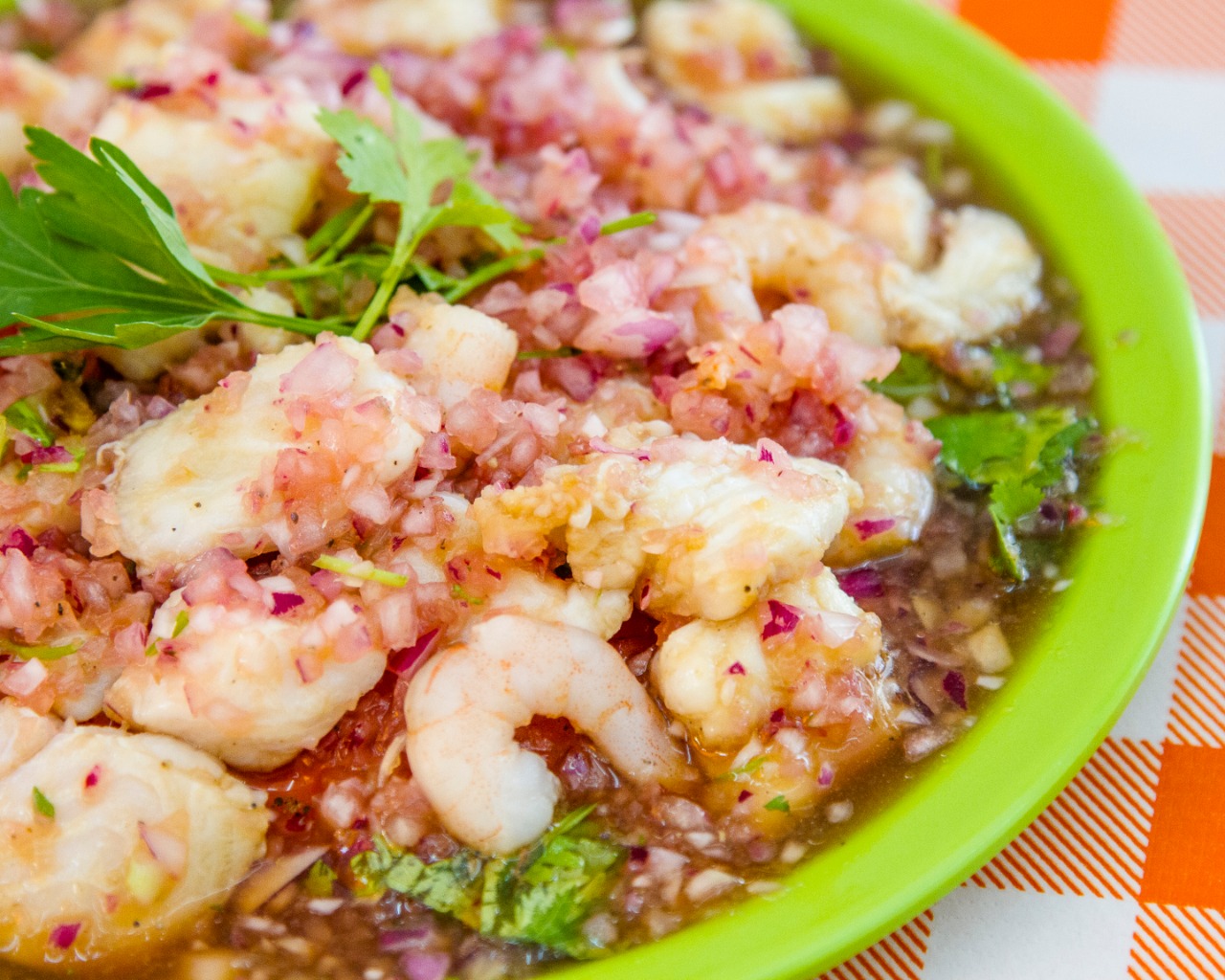 Aliño elaborado a base de salsa de soya, jugo de limón, cebolla morada finamente, especies orientales y un toque de ajo y cilantro. (no es picante)