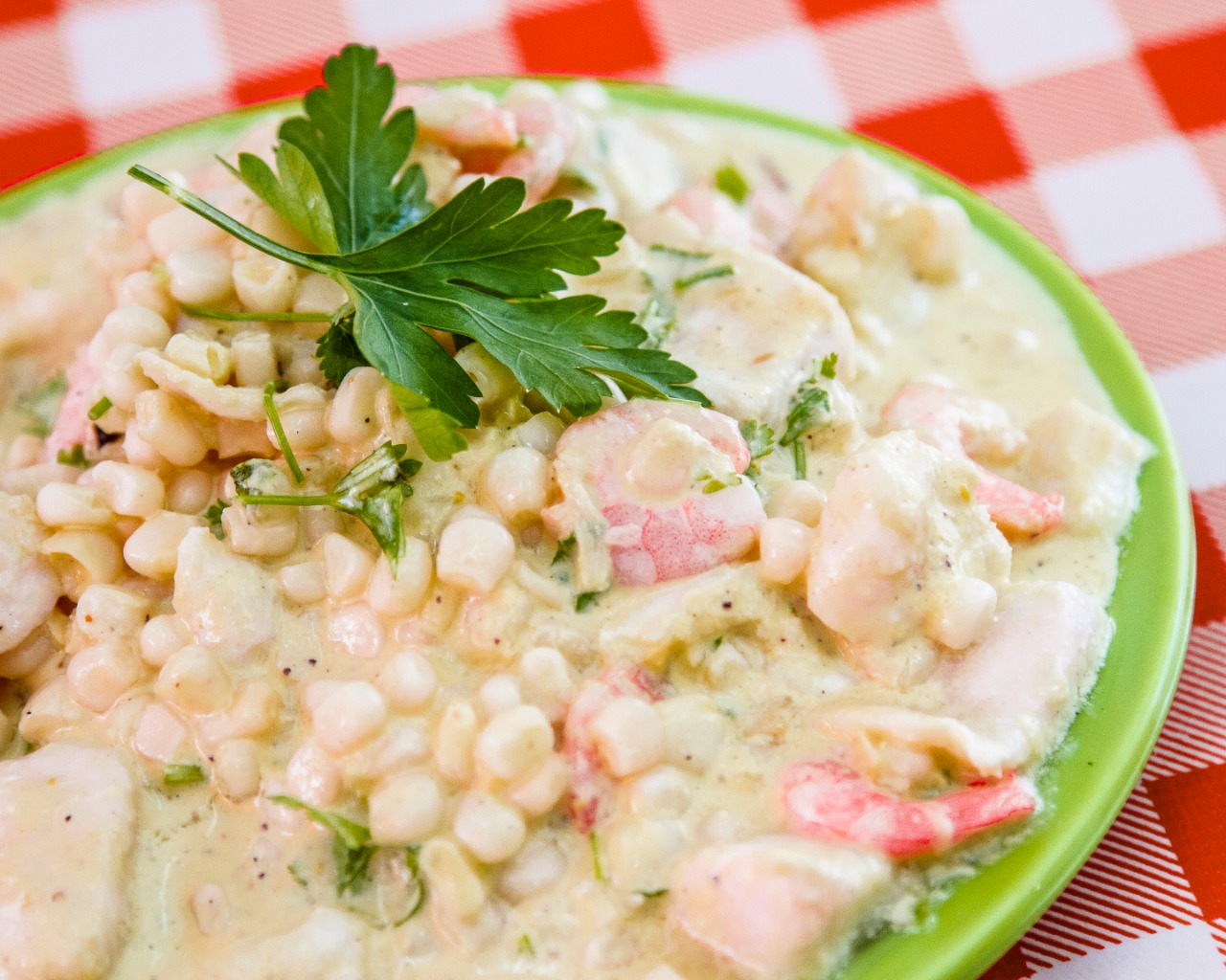 Rico aderezo de pimiento amarillo acompañado con elote blanco y un toque de cilantro (no es picante).