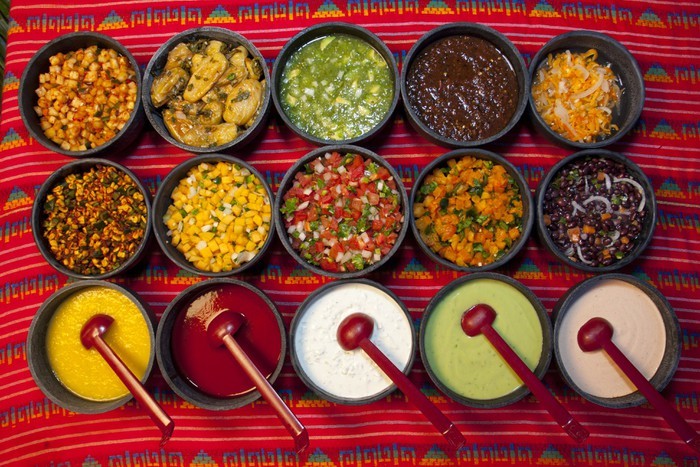 Pastor, asado queso fundido, guacamole, frijoles charros, alambre, champiñones, tortillas,y salsas