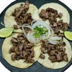 TORTILLA DE MAIZ CON CARNE ASADA , CEBOLLA Y CILANTRO