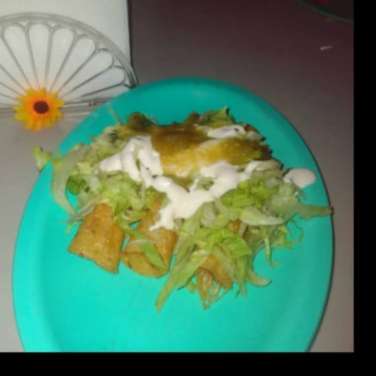 4PZAS DE TACOS DE POLLO FRITOS CON SALSA VERDE/ROMANITA/MEDIA CREMA