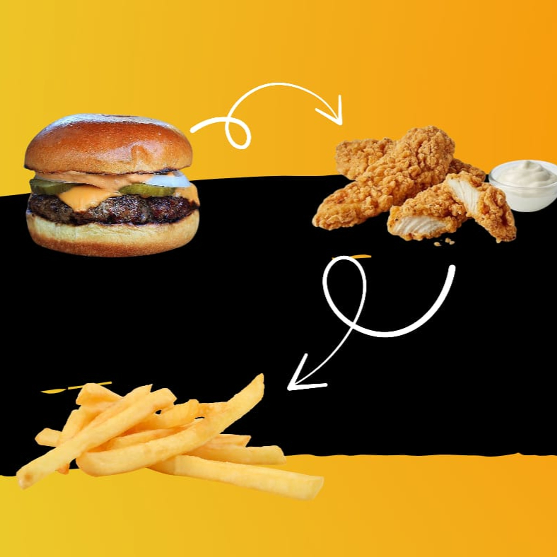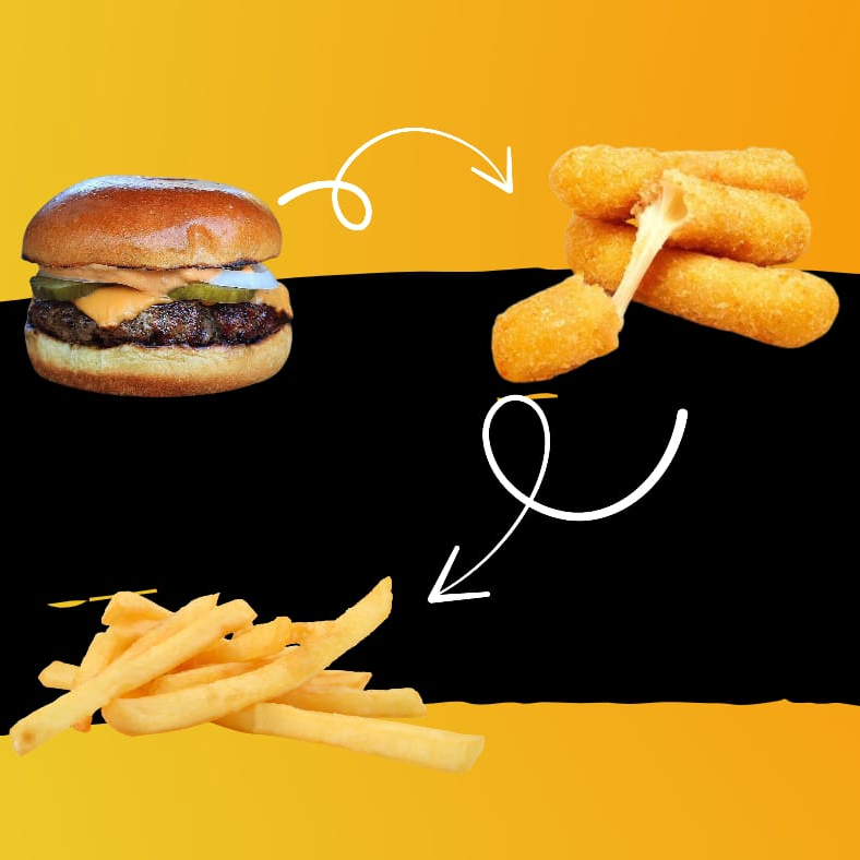 1 hamburguesa de res + 6 dedos de queso + 1 orden de papas