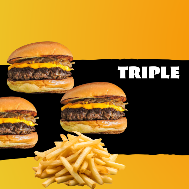 3 hamburgiuesas de res con una orden de papa a la francesa regular