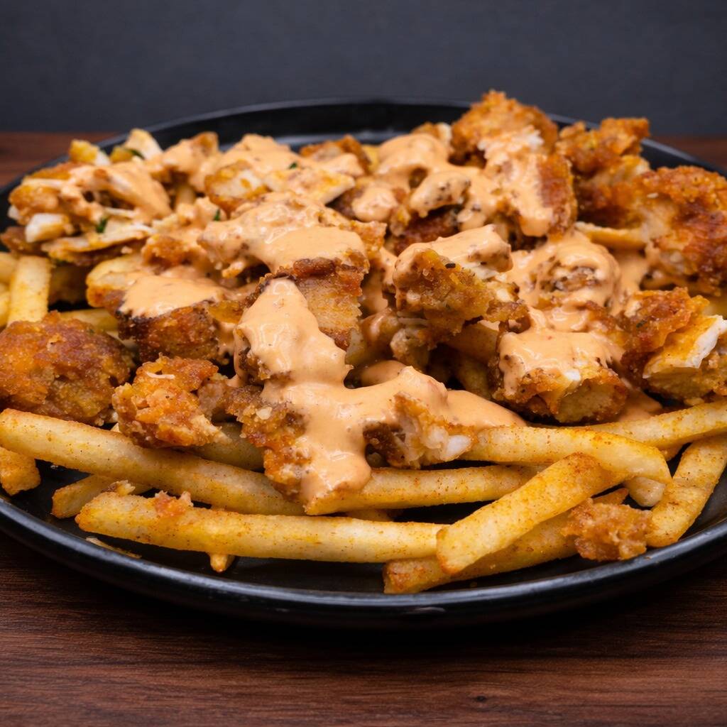 ORDEN DE PAPAS ALA FRANCESA CON TIRAS CRISPY PICADAS CON MAYONESA DE CHIPOTLE ENCIMA