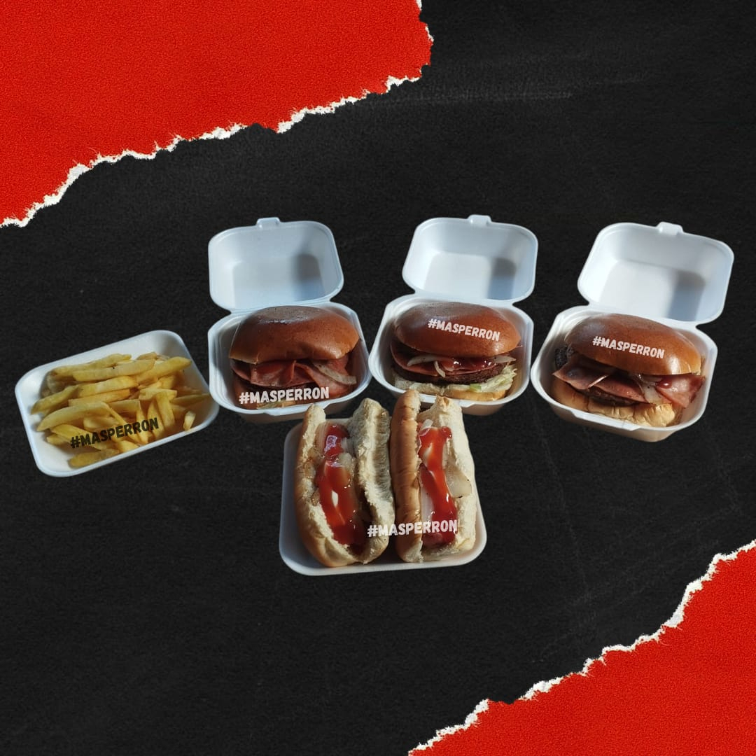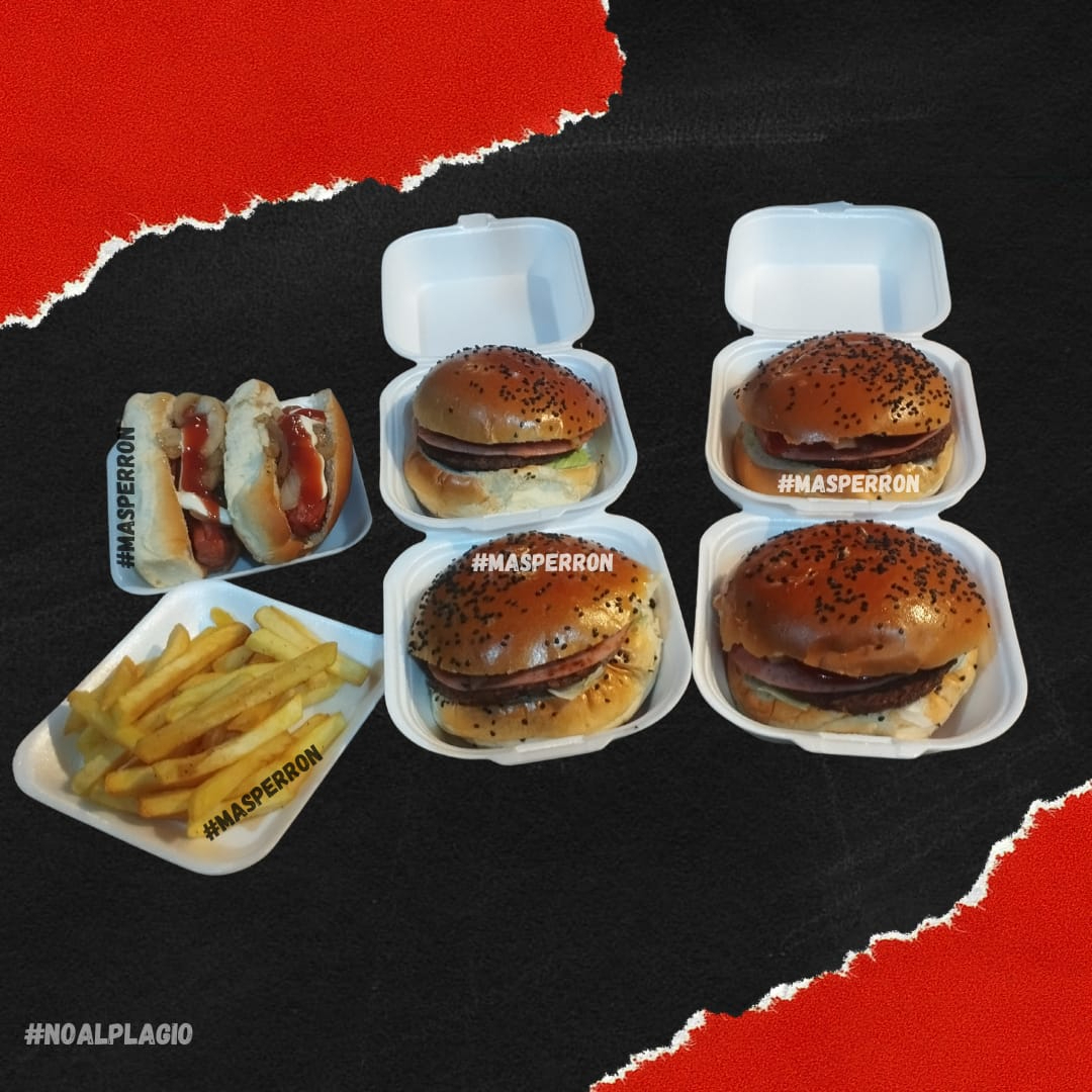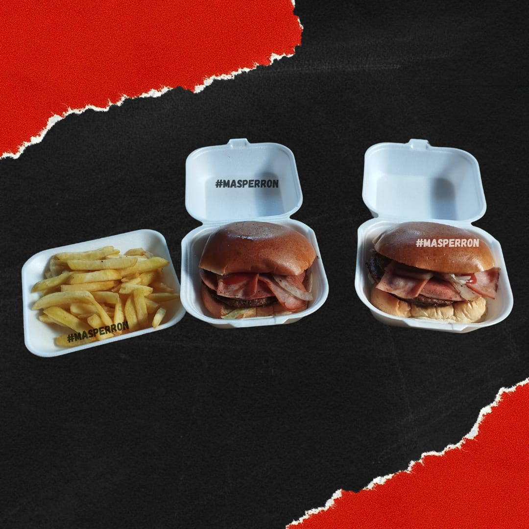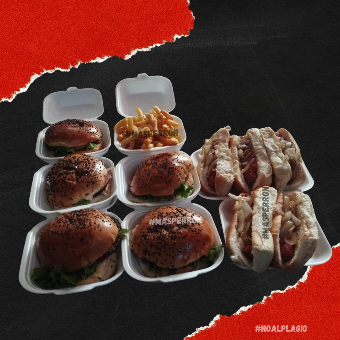 El Combo incluye: 2 hamburguesas res con aros y bbq, 2 perros calientes y 1 papa ch (se envia aparte sobre chile y catsup). ingredientes de las hamburguesas: pan brioche con ajonjoli negro, aros cebolla, bbq, queso americano, jamon, lechuga, mayonesa y catsup. ingredientes de los perros calientes: Pan natural, salchicha, cebolla frita, mayonesa y catsup.actualizacion 18/10/2025