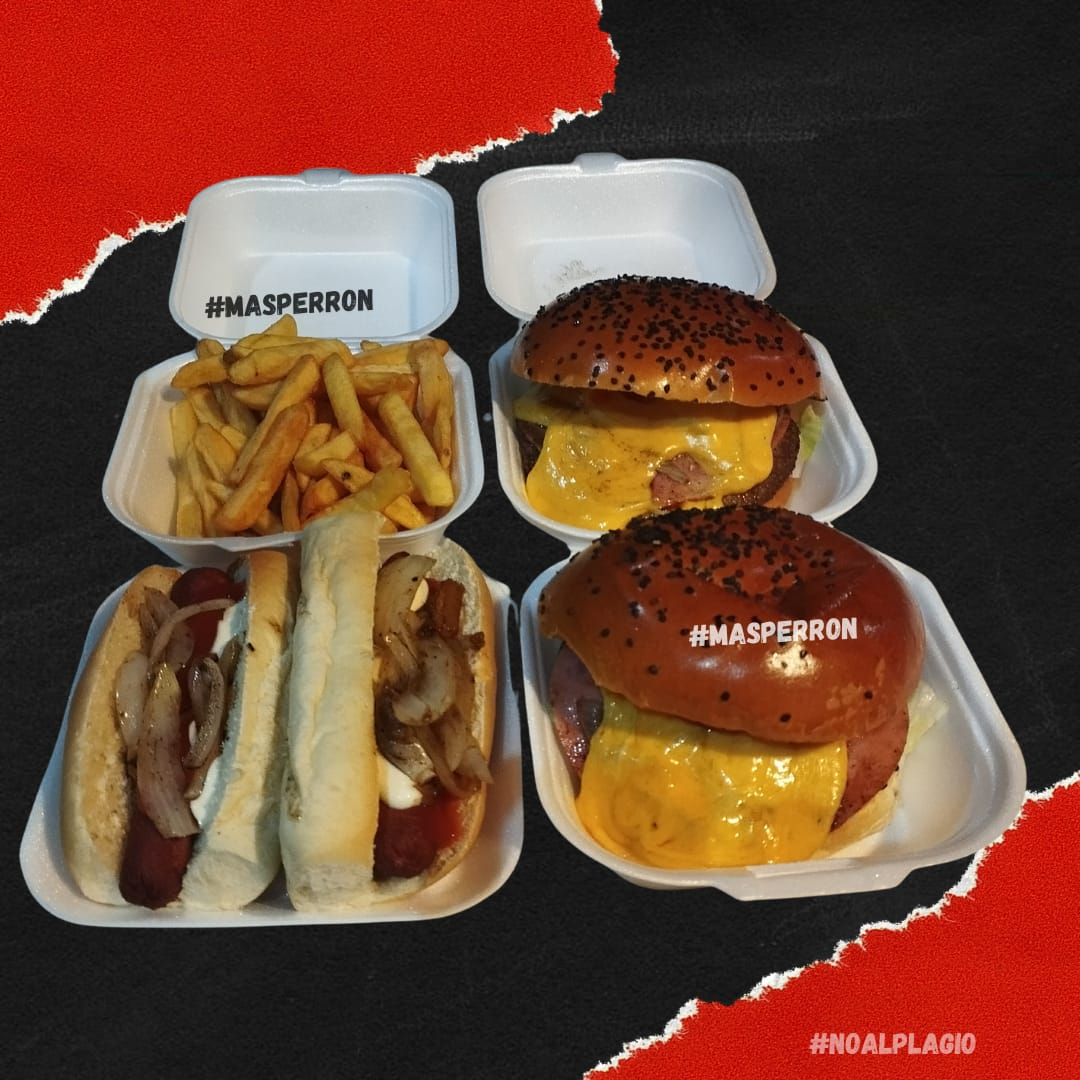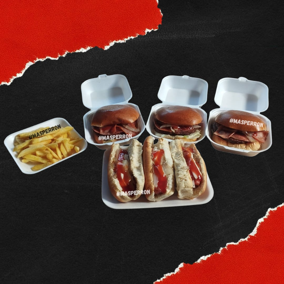 El Combo incluye: 2 hamburguesas res, 4 perros calientes y 1 salchipapa ch (se envia aparte sobre chile y catsup). ingredientes de las hamburguesas: pan brioche con ajonjoli negro, queso americano, jamon, cebolla frita, lechuga, mayonesa y catsup. ingredientes de los perros calientes: Pan natural, salchicha, cebolla frita, mayonesa y catsup.actualizacion 18/10/2025