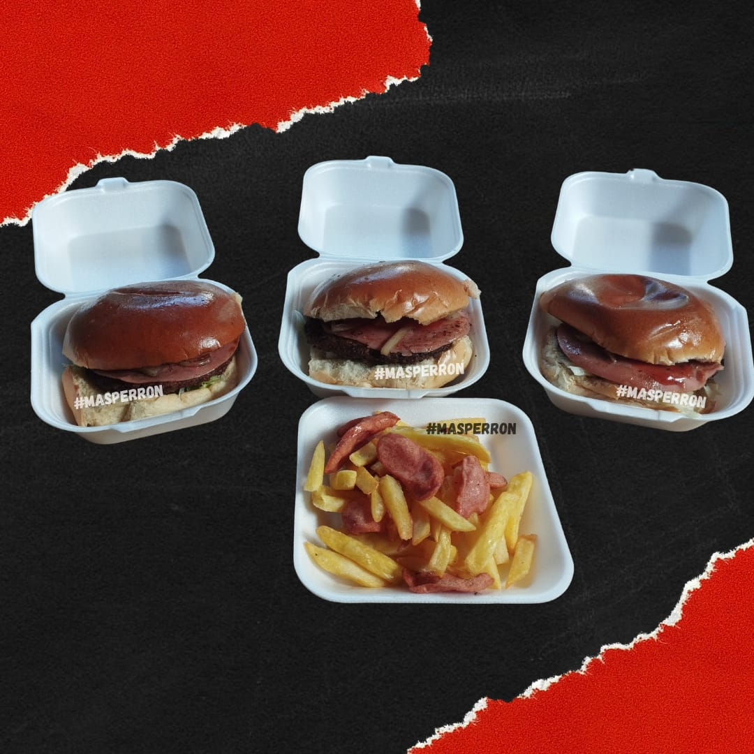 El Combo incluye: 3 hamburguesas res y 1 salchipapa ch (se envia aparte sobre chile y catsup). ingredientes de las hamburguesas: pan brioche con ajonjoli negro, queso americano, jamon, cebolla frita, lechuga, mayonesa y catsup. actualizacion 18/10/2025