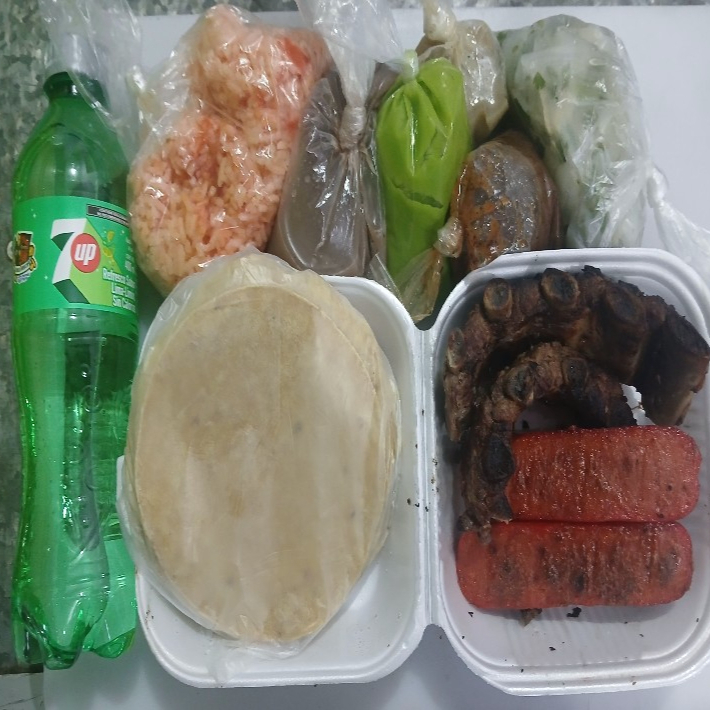 ½ de Costilla Asada 🍖 ➕ ½ de Carne Asada 🥩 ➕ ½ de Tortilla 🫓 ➕ 3 Salchichas Asaderas 🍠 ➕ 1Litro de Frijol Colado 🫘 ➕ 🍚 Arroz Rojo 🍅 ➕Cebolla Asada 🧅 ➕ Salsa de Aguacate 🥑 ➕ Salsa de Tomate 🍅 ➕ 1 Refresco de Sabor Variado de 2Lts 🥤