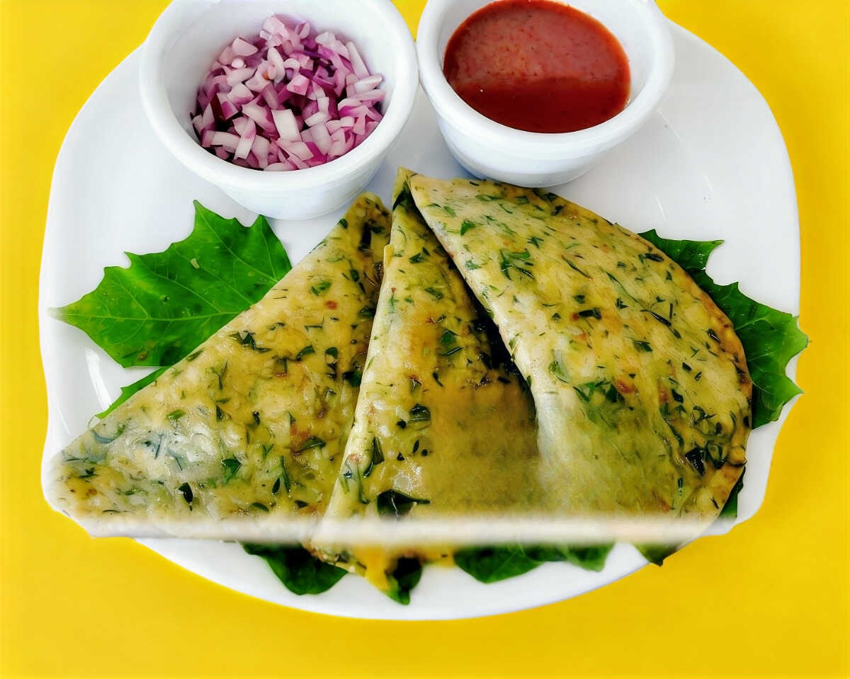 3 tortillas de maíz, bañadas en frijol colado, rellenas de cazón entomatada y acompañada de salsa de tomate y chile habanero Asado