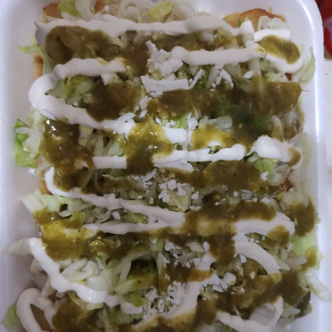 TOTOPOS, ROMANITA, POLLO, RABANO, AGUACATE, MEDIA CREMA, CEBOLLA