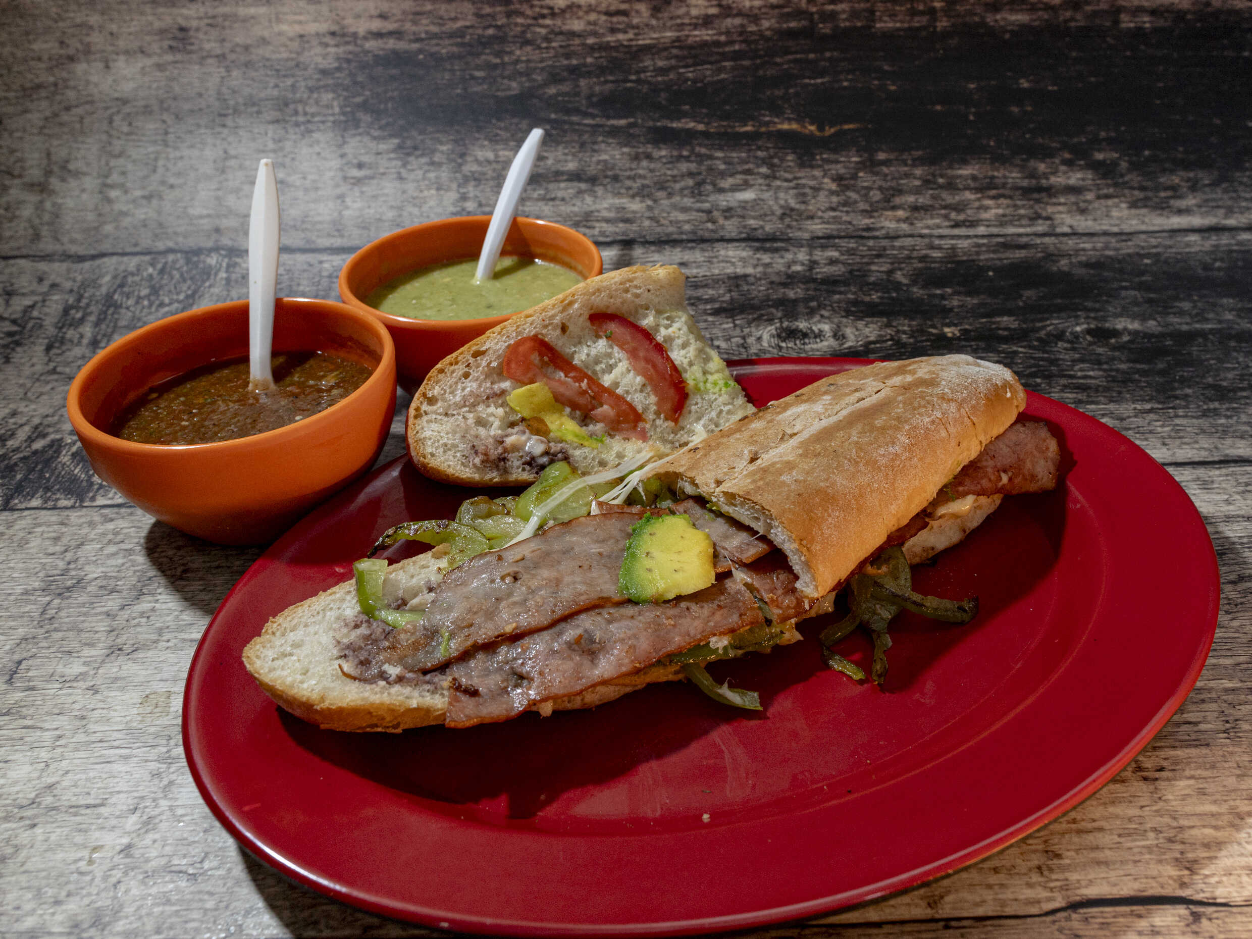 Torta de Asado*1 + Agua de Jamaica 1 lt*1