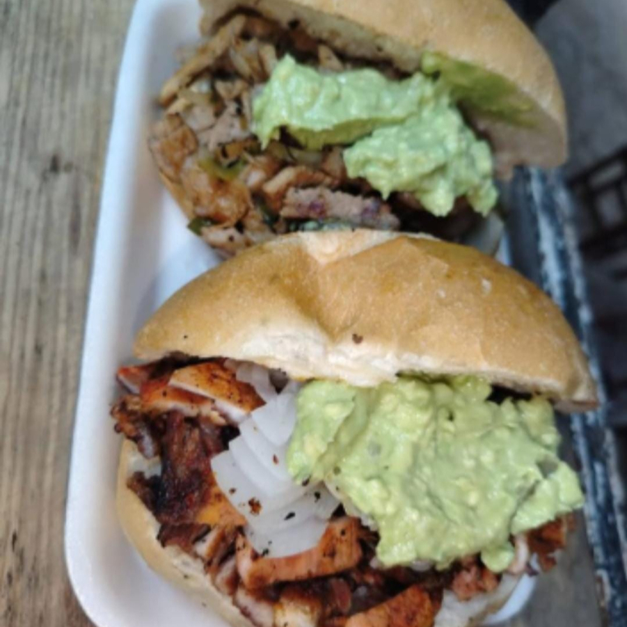 Tortas*2 Carne asada al carbón, frijol, cebolla, guacamole