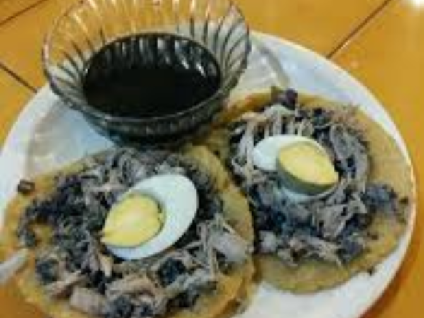 Deliciosos panuchos estilo yucateco, con condimento de relleno negro y pavo, acompañados de huevo sancochado.