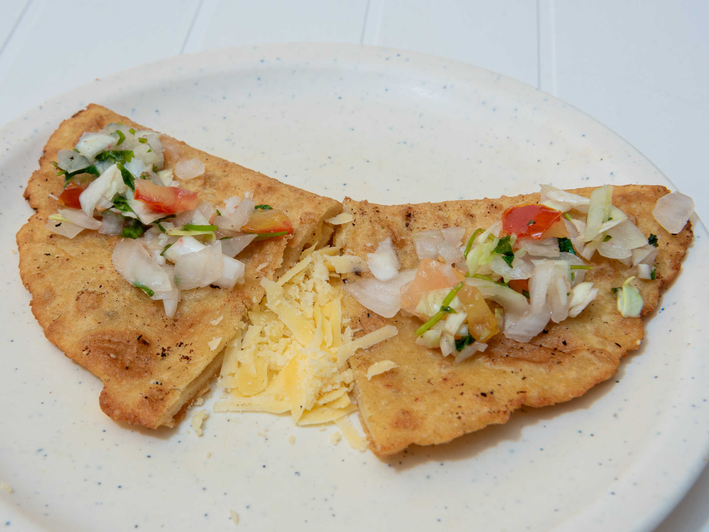 tortilla suave frita. Con lechuga castacan pico de gallo pepino salsa y guacamole