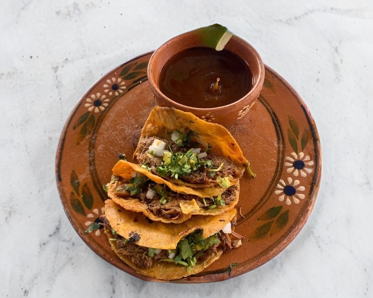 3 Tacos de Birria de Maíz y Consomé Sencillo