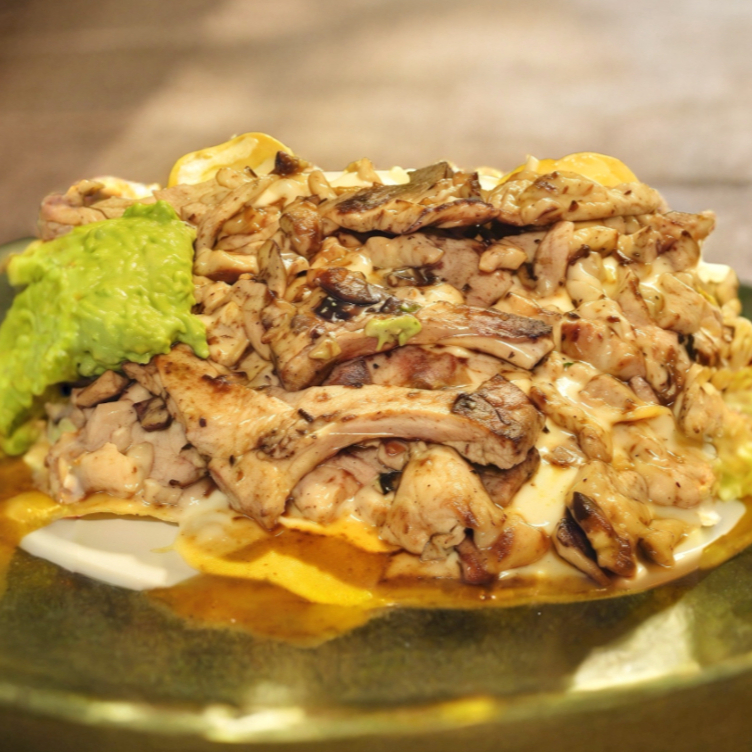 Deliciosos nachos de chuleta.