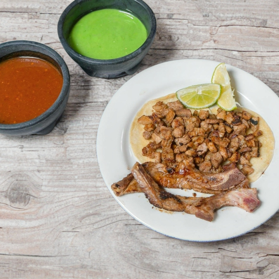 Delicioso kilo de chuleta, incluye salsas y tortillas.