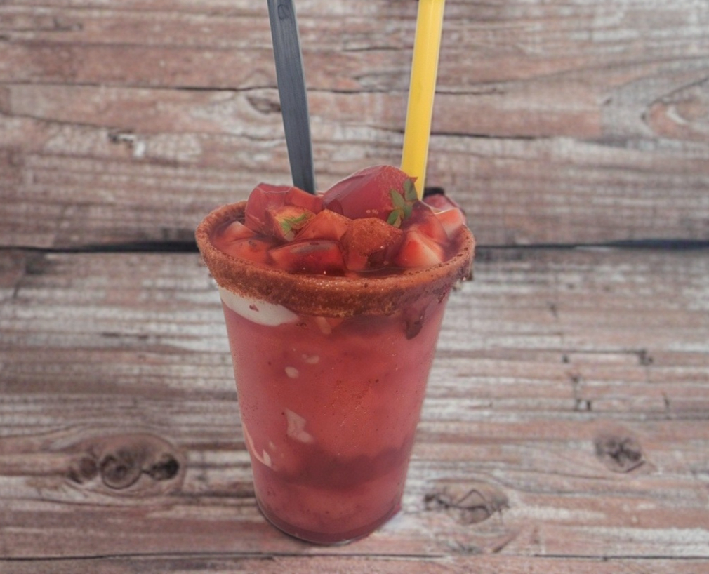 Chamoyada de fresa con un toque de chamoy, combinación dulce y picosita que se disfruta en cada bocado.