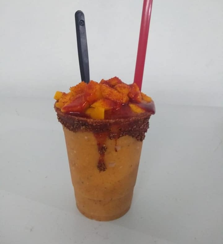 Chamoyada que combina el chamoy con trozos de mango fresco, ideal para quienes buscan sabores auténticos y atrevidos.