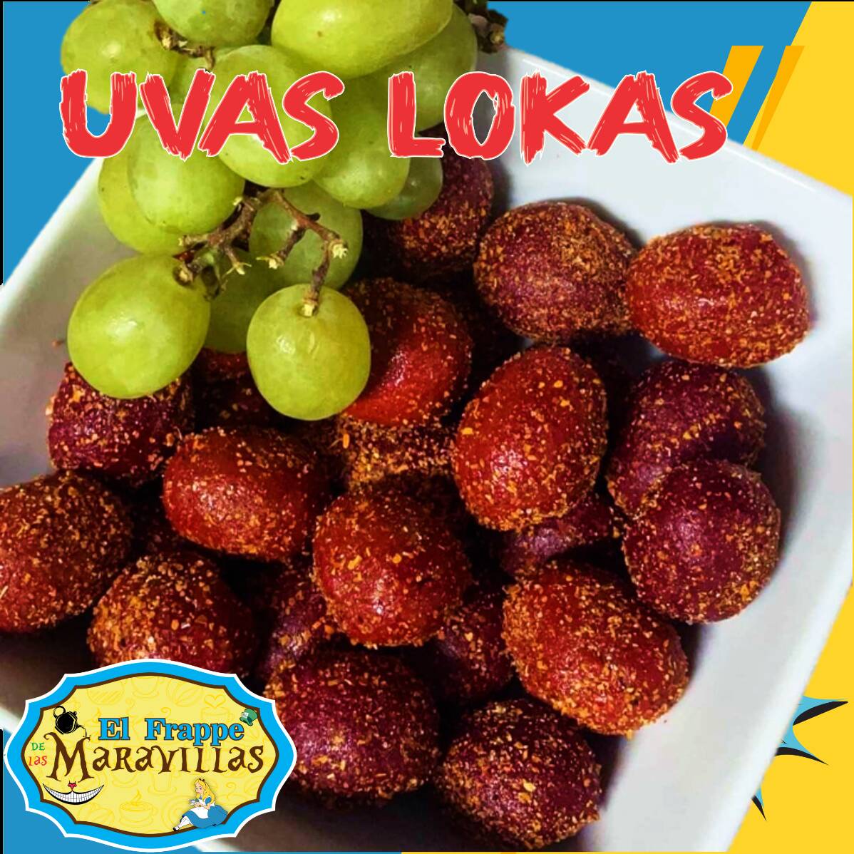 uvas forradas con pulpa de chamoy, acompanado de gomitas