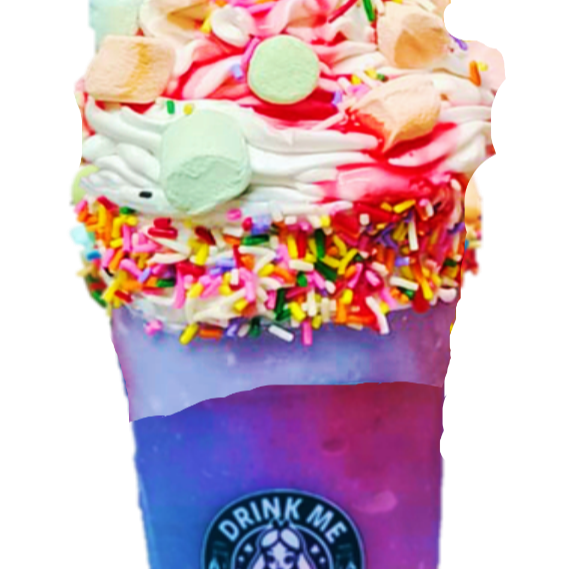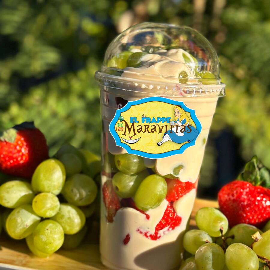 Frappe de Tutti Fruti, sabor chicle,DECORACION PUEDE VARIAR DEBIDO AL DOMO Y EMPLAYE QUE SE USA PARA EL TRASLADO
