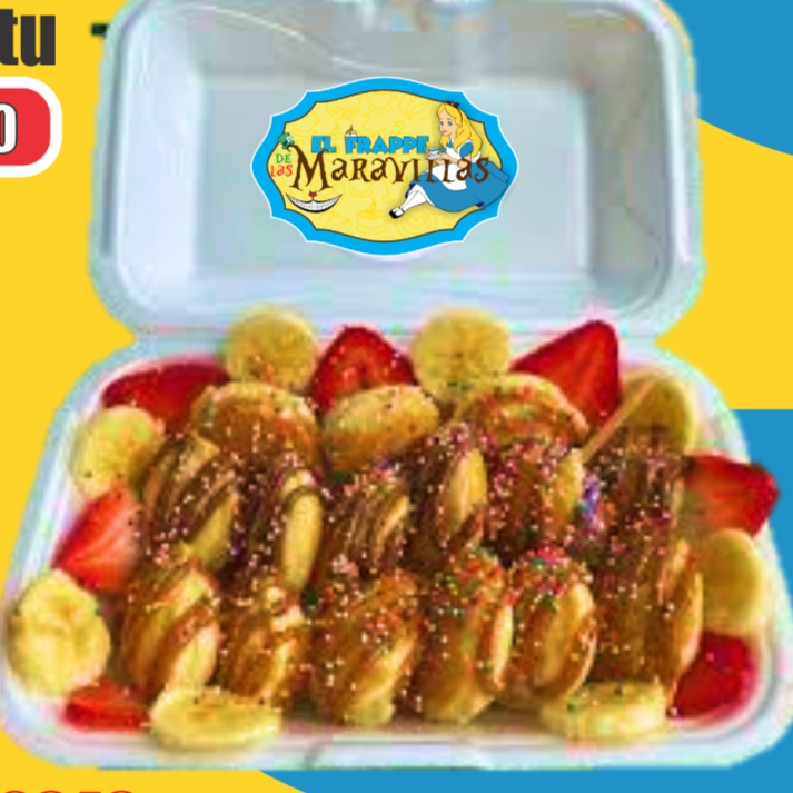 Charola con 50 piezas, con fresa y plátano picado, bañado con el jarabe de tu preferencia