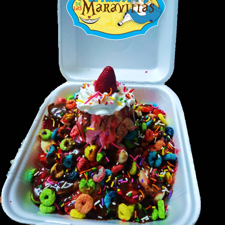 rellena de helado, chantilly y el topping de tu preferencia: nutella, cajeta, platano, mamut, oreo, bubulubu